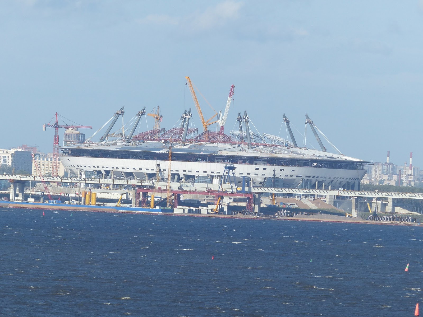 Baustelle des neuen Fußballstadions von Sankt Petersburg zu sehen in dem auch